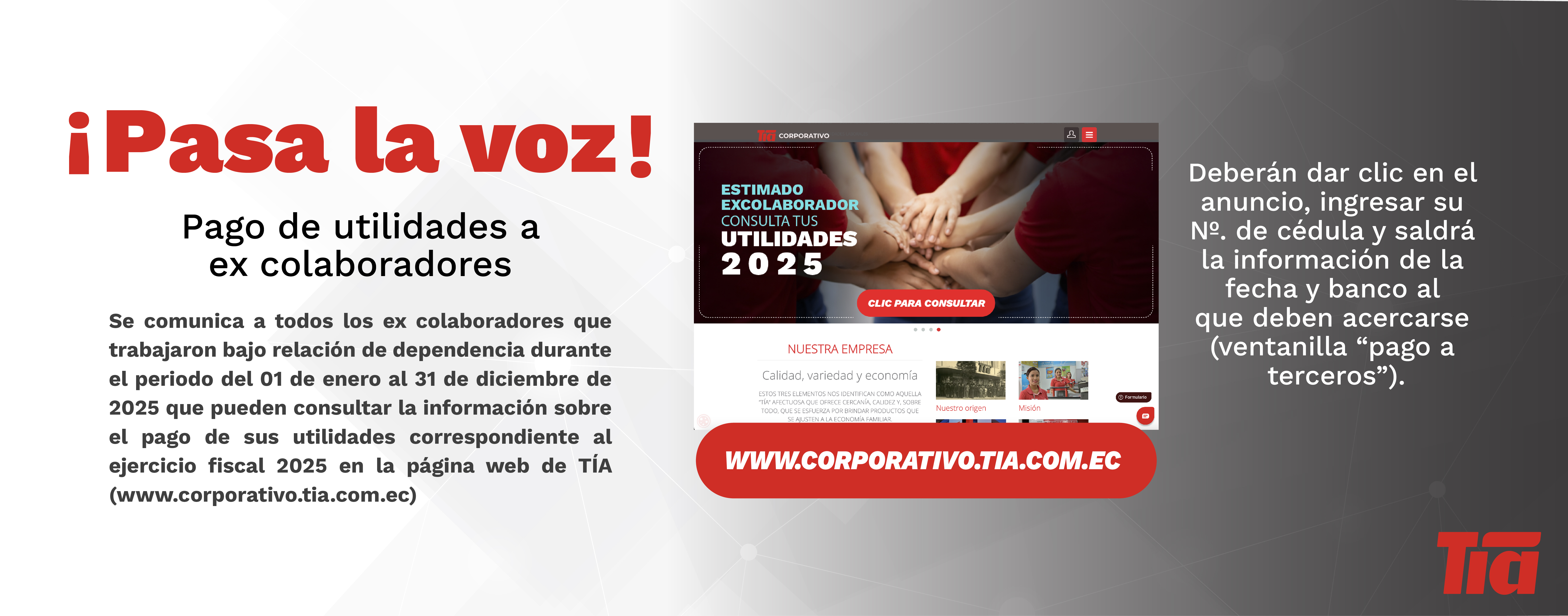 Beneficia a tus colaboradores con nuestra tarjeta Consumo Empresarial para que realicen sus compras en nuestras Tiendas Tía y Tía Express.