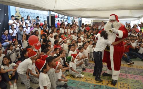 El sábado 9 de diciembre culminamos con nuestras actividades de la tradicional Chocolatada Navideña, que anualmente realizamos a finales de noviembre e inicios de diciembre, con la ayuda de todos nuestros locales a nivel nacional y nuestro grupo de voluntarios TÍA, conformados por colaboradores de oficina matriz, que se encargan de apadrinar una institución educativa para organizar un agasajo navideño a los niños y niñas de estos planteles..