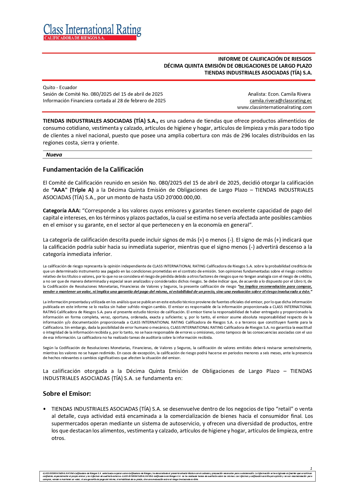 Resumen Ejecutivo Décima Quinta Emisión de Obligaciones